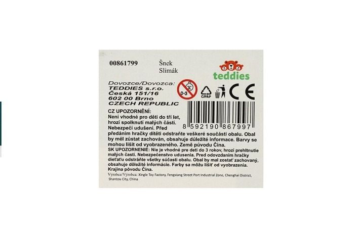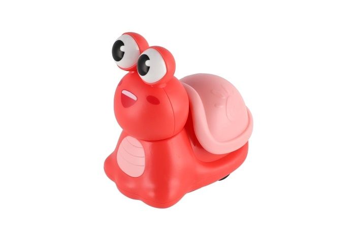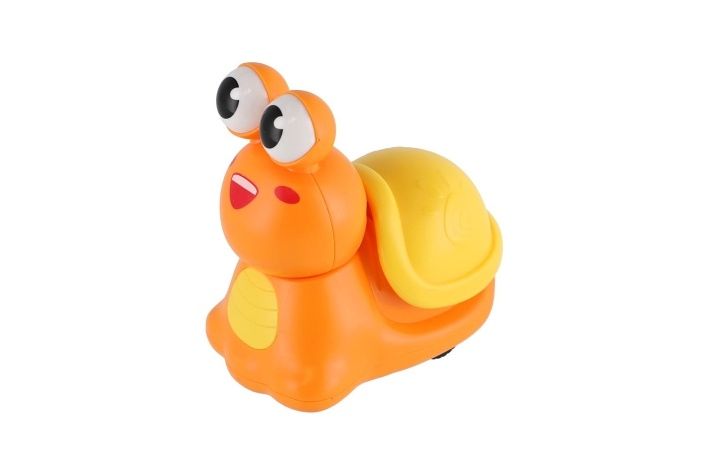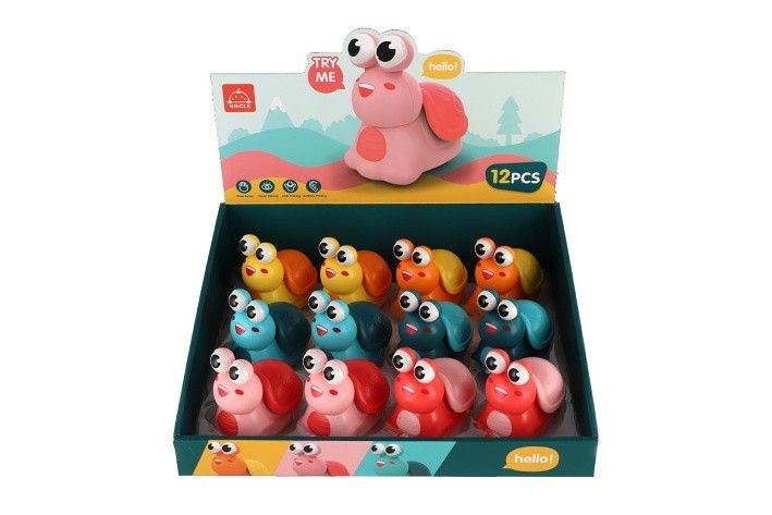 Šnek, kterýmu stačí stisknout ulitu a začne před tebou ujíždět. Šnek je velikosti 8 cm a je na setrvačník. Vybrat si můžete ze 3 barev.