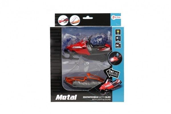 Sněžný skútr kov/plast s lehátkem se světlem se zvukem na zpětné natažení v krabicče 19x23