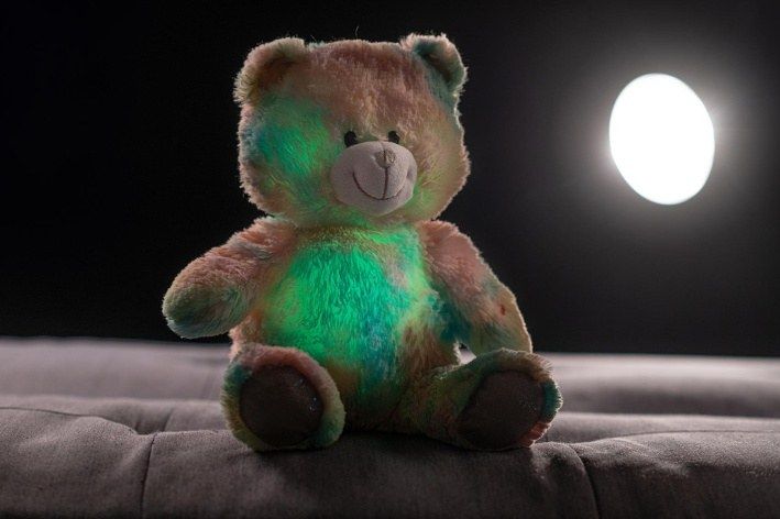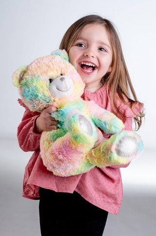 Roztomilý plyšový medvídek je vyroben z kvalitní jemné plyše. Tento plyšový kousek je ideálním dárkem! Medvídek Snílek duhový pomáhá dětem snadněji usnout. Po zmáčknutí tlapky hraje klidnou relaxační hudbu cca 17 minut. Ve tmě svítí a mění barvy.
