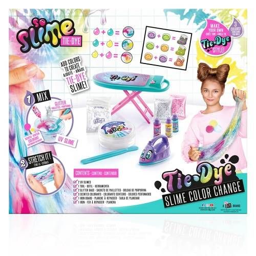Toto je úplně nová řada slizů So Slime. Zapojte svoji fantazii a vytvořte si úžasně slizkou prádelnu. Vytvořte si jedinečný duhový sliz. Zamíchejte do bezbarvého slizu barvy, kombinujte je a můžete použít i třpytky. Použijte žehličku s UV světlem a sledujte, jak duhový sliz změní svoji barvy. Věk: 6 +. Obsah: žehlící prkno, žehlička s UV světlem, míchátko, průhledný sliz v krabičce, průhledný sliz v sáčku, 3 barvy s vůní vanilky, ananasu a jahod a 2 sáčky třpytek. Baterie: 3× LR41 (5V), jsou součástí balení.