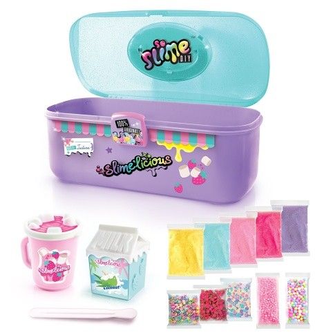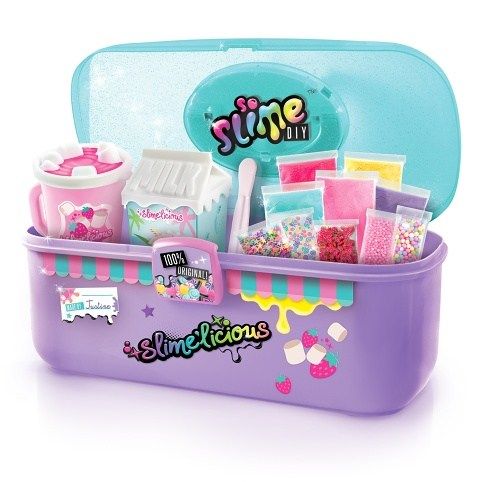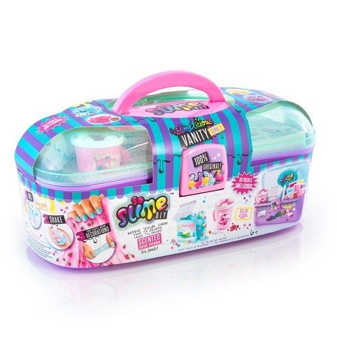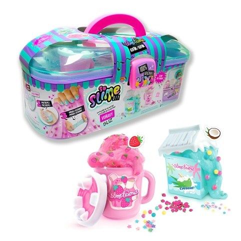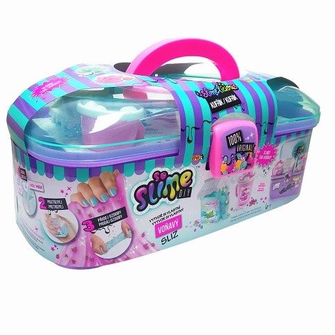 Toto je úplná novinka So Slime – Zábavný kufřík se slizem. Vytvořte si jedinečné voňavé slizy. Míchejte barevné a voňavé slizy, přidejte ozdoby a třpytky! Sliz natáhněte a užijte si zábavu. Obsah: 5 sáčků barevných slizů, 5 druhů ozdob do slizu, kelímek, nádobka „na mléko“ a špachtle na míchání. Vhodné pro děti od 6ti let.