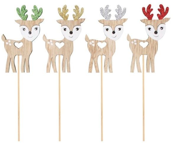 Sob s parohy s glitrem dřevěný 6 x 9 cm + špejle (4742)