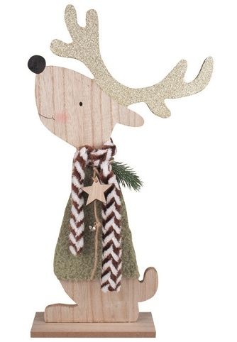 Sob v zeleném kožíšku dřevěný na postavení, 25 x 44,5 x 6 cm Tato dřevěná dekorace představuje roztomilého soba v elegantním zeleném kožíšku. S jemnými detaily a přírodním vzhledem je ideální pro vytvoření vánoční a zimní atmosféry. Sob se stabilní základnou je perfektní pro postavení na stůl, polici nebo parapet, kde dodá vašemu interiéru kouzlo přírody a svátečního období. Využití: Skvělý doplněk pro vánoční aranžmá, zimní dekorace nebo pro milovníky přírody. Sob v kožíšku se hodí do obývacího pokoje, chodby nebo dětského pokoje, kde přinese do prostoru klidnou a sváteční náladu. Vlastnosti: rozměry: 25 x 44,5 x 6 cmmateriál: dřevo, kožíšekurčeno k postaveníDřevěný sob v zeleném kožíšku vnese do vašeho domova přírodní kouzlo, eleganci a teplou zimní atmosféru.