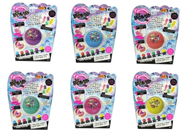 Vyrobte si šumivou bombu do koupele. Smíchejte prášek a kyselinucitronovou s vodou a je hotovo. Můžete přidat také drobné dekorace a jakopřekvapení figurku. Šumivá bomba krásně voní. Můžete si vybrat ze třírůzných vůní: vanilka, jahoda a ananas. Doporučený věk: 6 +. Baleníobsahuje: Prášek na výrobu šumivé bomby, sáček s kyselinou citronovou,formu, kapátko, figurku , sáček s drobnými dekoracemi a návod.
