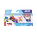 Sonic Go Go Racers Mini Launcher SET. Obsahuje 1 vystřelovací zařízení, 1 jezdící figurku, 1 cíl. Jednotlivá vystřelovací zařízení lze vzájemně propojit. 3 varianty - Sonic, Amy, Tails.