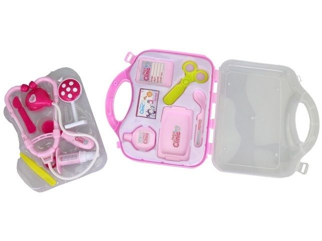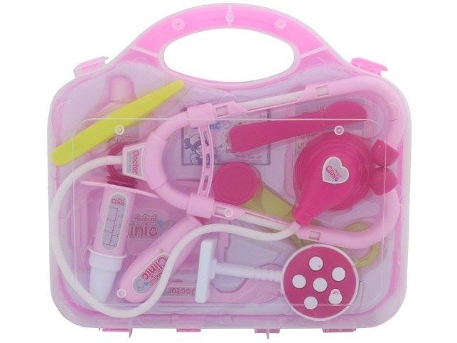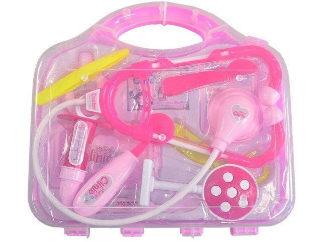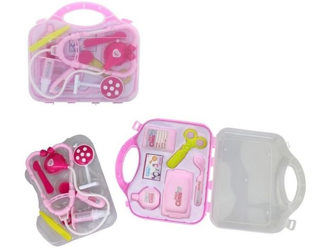 Souprava doktorská, 27,5 cm. Ideální hračka pro všechny co rádi ošetřují a léčí ať už panenky plyšáky, maminku nebo tatínka. Sada obsahuje všechny důležité věci k základnímu ošetření pacienta. Vše je zabaleno v úhledném a praktickém kufříku. Hračka je určena pro děti 3+. Rozměr hračky je 5 x 21 x 19 cm. Materiál hračky je plast. Produkt je určený pro holky.