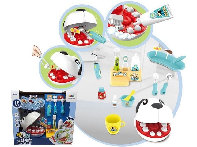 Skvělá a neokoukaná hra, která podpoří děti v péči o jejich chrup. Děti si zahrají s hrou na zubaře a udělají pejskovi pravidelnou zubní kontrolu. Pokud si pejsek špatně čistil své zuby a zanedbal tak svou zubní hygienu musí všechny zuby ven. Materiál: plastDoporučený věk: 3 +