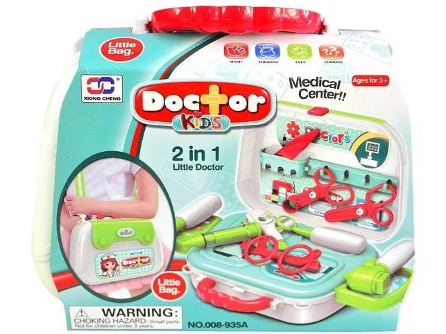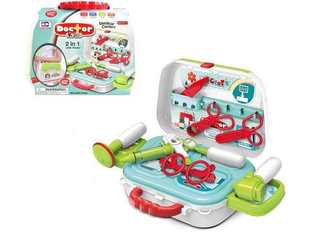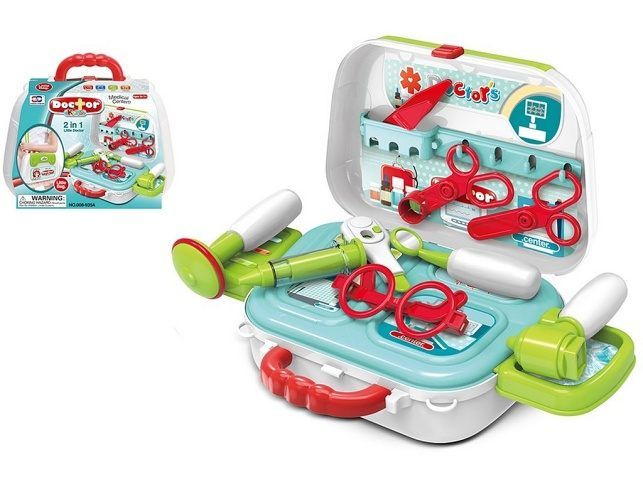Souprava doktorská, v kufříku, 23 cm. Kufřík se základním vybavením první pomoci je určený pro včechny malé doktorky a doktory. Hračka je určena pro děti 3+. Rozměr hračky je 18 x 23 x 8 cm. Materiál hračky je plast. Produkt je určený pro kohokoliv.