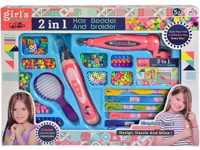 Sada korálků je určena pro všechny milovnice módy. Díky sadě mohou vytvořit úžasné a kreativní účesy. Stačí pouze navléct a mohou vytvářet mnoho barevných kombinací. Sada obsahuje navlékač, mnoho různých korálků, hřeben, bavlnky a zaplétač. Rozměr balení: 42 x 32 x 6 cmDoporučený věk: 3 +Napájení: baterie 2 x AA 1,5 V