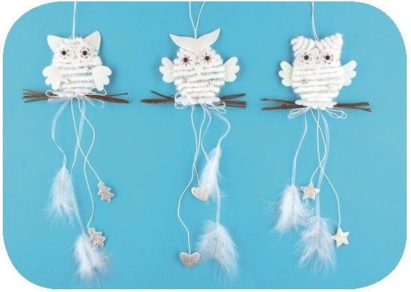 Sova bílá na zavěšení, 22 cm