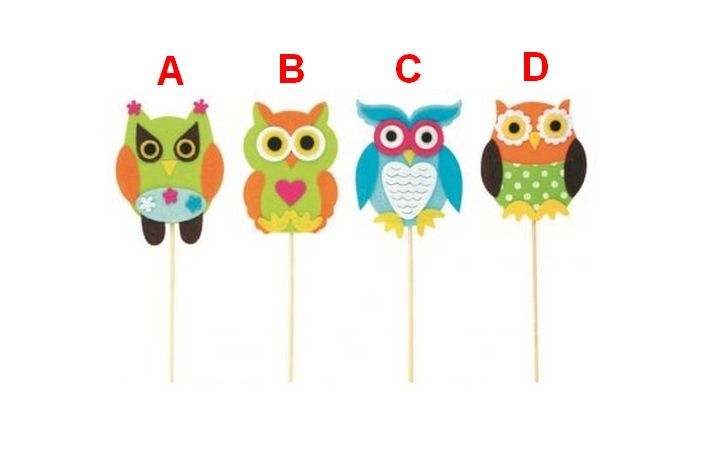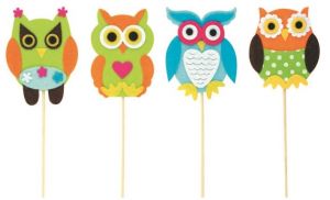 Sova z filcu 9cm + špejle. Cena za 1 kus, dodáváme v mixu motivů.