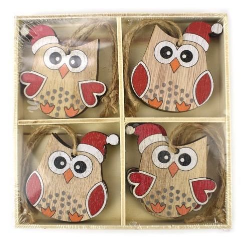 Sova závěs, dřevo, 6 cm, 8 ks