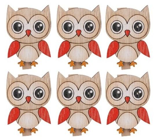 Sovy dřevěné na kolíčku 4 cm, 6 ks (42010)