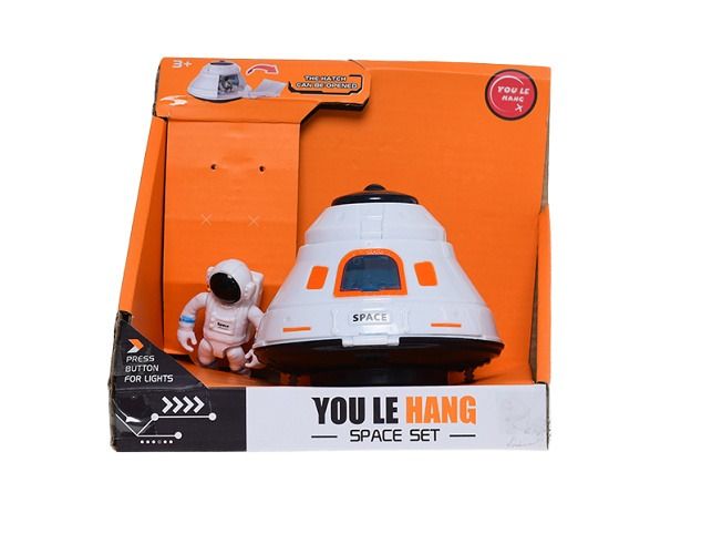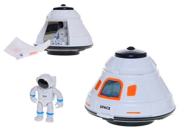 Space přistávací modul 10cm na baterie se světlem a astronautem 6cm v krabičce
