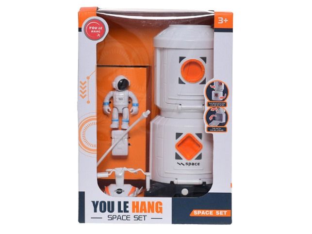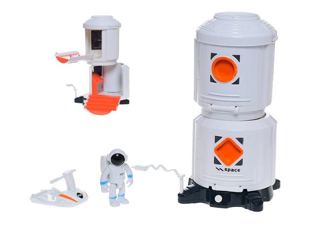 Space vesmírná stanice 20cm na baterie s doplňky se světlem a zvukem v krabičce