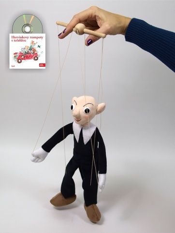 Textilní loutka s dřevěným vodícím křížem. Bonus: audio CD s příběhy Hurvínka (dle aktuální nabídky).