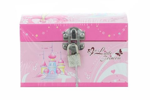 Šperkovnice pro malé princezny se zámečkem. Materiál pevný karton. Baleno v průhledné folii. Rozměry cca 14x9x10 cm. Věk 3+