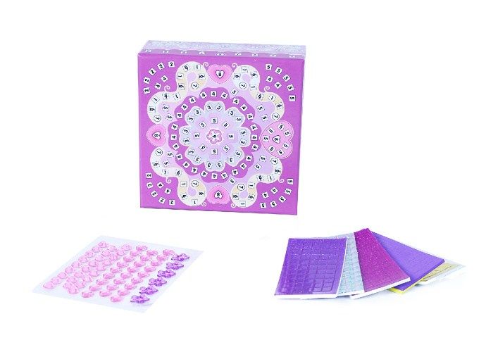 Kreativní šperkovnice, kterou si můžete sami vyzdobit pomocí přiložených třpytivých dílků. Jednotlivé dílky se nalepí na políčka s vyobrazenými čísly. Ideální pro rozvoj kreativního myšlení.