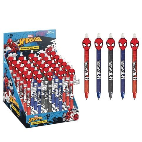 Produkt Spiderman gumovací pero DPL30 představuje zajímavou kombinaci psací potřeby a oblíbené licenční postavy z Marvel světa. Pero je navrženo s důrazem na motiv Spidermana, což je patrné nejen z potisku na těle pera, ale také z originálního zakončení ve tvaru hlavy Spidermana, které dodává produktu hravý a atraktivní vzhled. Tento design je vhodný především pro děti a fanoušky komiksových hrdinů, kteří ocení spojení funkčnosti s oblíbeným tématem. Tělo pera je vyrobeno z plastu a je dostupné v několika barevných variantách, které zahrnují červenou, modrou a černou barvu. Každé pero obsahuje gelové inkousty, které jsou snadno gumovatelné, což umožňuje rychlé a čisté opravy bez zanechání stop. Tato vlastnost zvyšuje praktičnost pera a činí ho vhodným jak pro školní použití, tak pro volnočasové tvoření. Gumovací mechanismus je umístěn na horní části pera, což je ergonomické a intuitivní pro uživatele. Produkt je balen v originálním vystavovacím stojanu, který pojme 30 kusů těchto per. Balení samotné je barevné a tematicky laděné do Spiderman stylu, obsahuje výrazné logo Marvel Spiderman a grafiku s pavučinami, což podtrhuje jeho licenční charakter. Díky tomu je produkt vhodný nejen jako praktická psací potřeba, ale i jako sběratelský předmět nebo dárek pro děti a fanoušky této populární postavy. Celkově je Spiderman gumovací pero DPL30 kvalitním a zábavným výrobkem, který kombinuje funkčnost gelového pera s možností mazání a oblíbený design superhrdiny. Jeho zařazení do kategorie Merch a licenční dárky podtrhuje jeho cílení na fanoušky a sběratele, zatímco klasifikace v rámci ostatních hraček potvrzuje jeho hravý a zábavný charakter.
