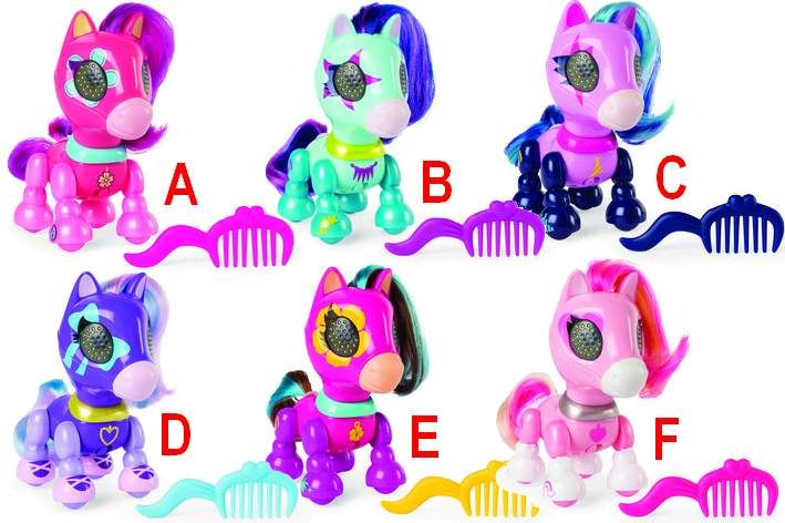 Interaktivní poníci Zoomer reagují na doteky hlavy nebo nosu. Vydávají veselé zvuky a mají svítící oči. Každý poník umí i svůj jedinečný trik. Poníkům můžeš česat hřívu přiloženým hřebenem. Vytvoř si svou sbírku poníků