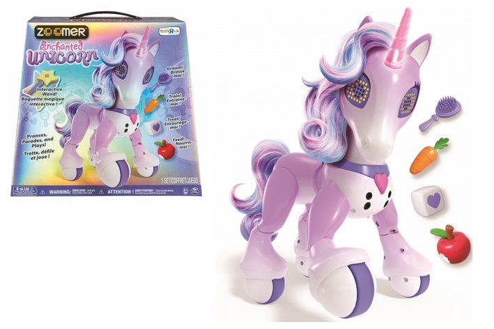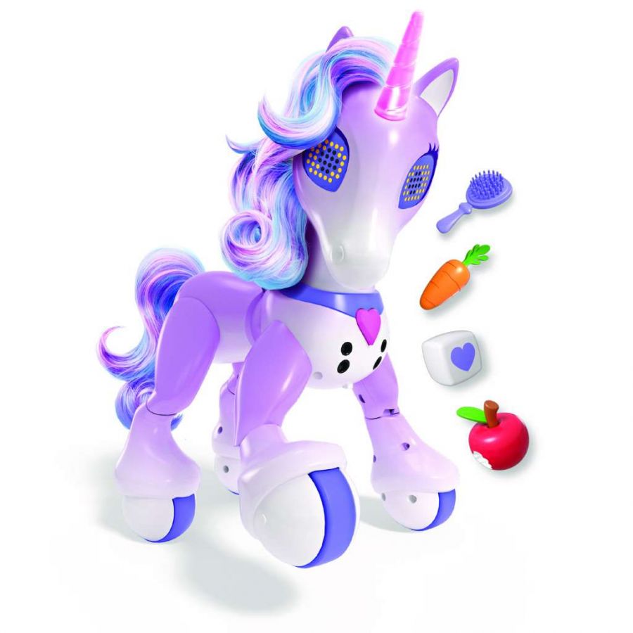 Kouzelný jednorožec umí sám chodit a má barevný svíticí roh, podle kterého poznáš, jak se zrovna cítí. Stiskni srdce na límečku a předvede nějaký kousek, například zatančí nebo se proběhne! Když má hlad, můžeš ho nakrmit přiloženým jablíčkem. Můžeš mu dát i kostku cukru! Když si lízne vícekrát za sebou, bude hyperaktivní a předvede speciální taneček! Vstup do světa snové zábavy s Kouzelným jednorožcem!
