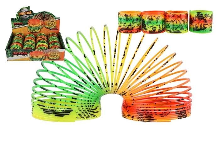 Oblíbená plastová spirála (pružina) s veselým motivem dinosaurů potěší každé dítě! Skvělá na hraní, „pochodování“ po schodech nebo jen tak na natahování a tvarování. Vhodná jako drobný dárek, odměna nebo veselá antistresová pomůcka.