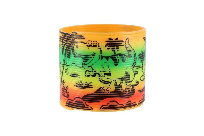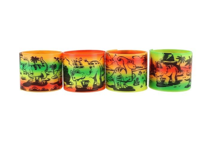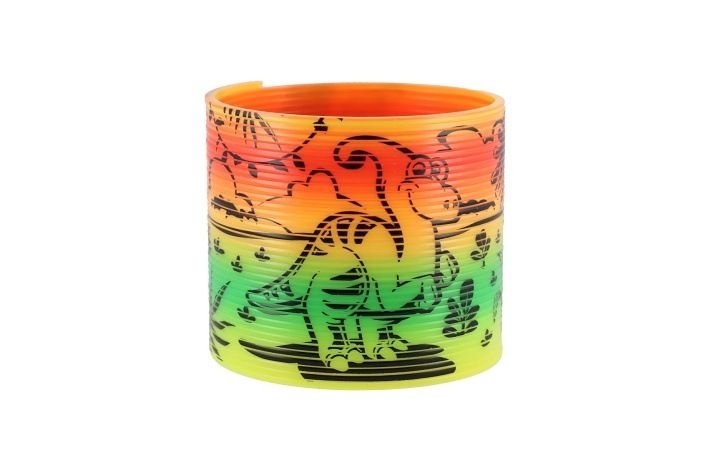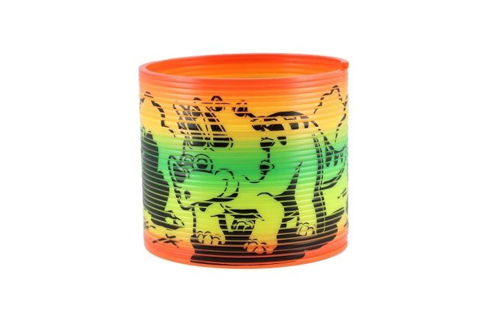 Oblíbená plastová spirála (pružina) s veselým motivem dinosaurů potěší každé dítě! Skvělá na hraní, „pochodování“ po schodech nebo jen tak na natahování a tvarování. Vhodná jako drobný dárek, odměna nebo veselá antistresová pomůcka.