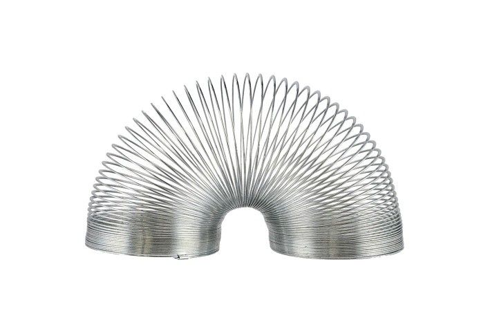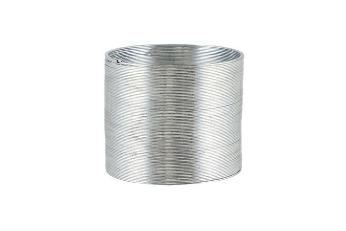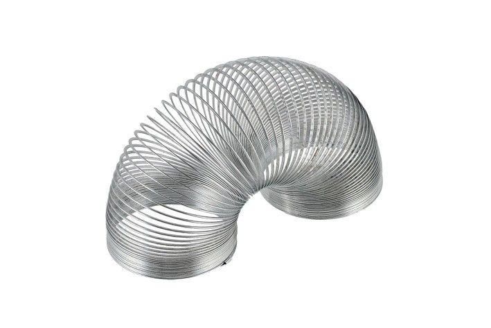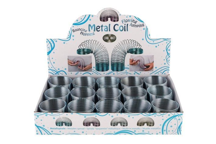 Kovová kouzelná pružina. Pružina je jako živá, lze ji pustit ze schodů a sama po nich přeskáče, nebo si ji přehupovat z dlaně do dlaně. Průměr 5,5 cm.