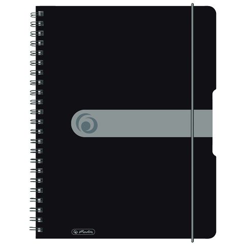 Spirálový blok easy orga A4/80 listů, 80 g/m2, spirála Twin Wire, plastové desky, perforace, děrování, s gumou, čtvereček, neprůhledný - černý