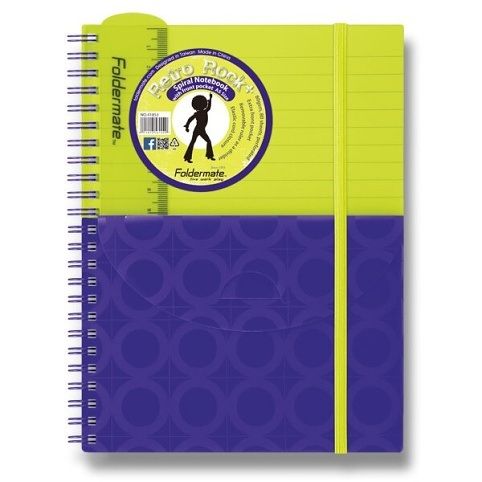 Spirálový blok s kapsou FolderMate Plus A5,80 listů, linkovaný - žluto/fialový