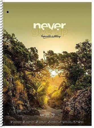 Spirálový sešit "Never give up", mix motivů, čtverečkovaný, A4+, 80 listů, SHKOLYARYK A4-0