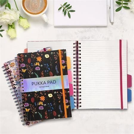 Spirálový sešit "Project Book Bloom", mix vzorů, B5, linkovaný, 100 listů, PUKKA PAD 9494-