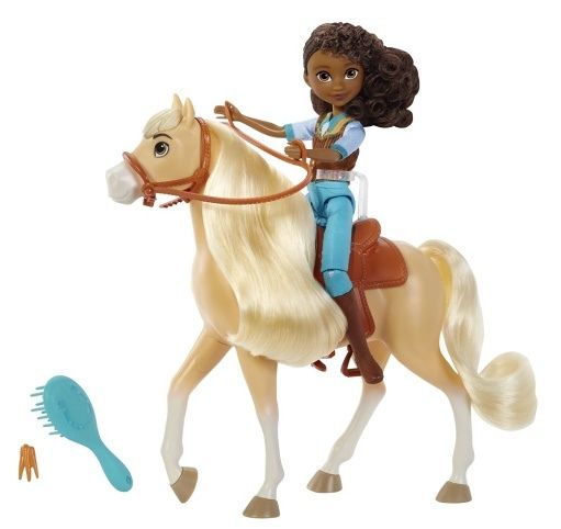 Staňte se součástí přátelství, odvahy a dobrodružství s animovaným filmem společnosti DreamWorks Divoký Spirit! V těchto setech panenky s koněm si můžete vybrat mezi Lucky a jejím koněm Spiritem, Abigail a jejím koněm Boomerangem a Pru a jejím koněm Chica Lindou. Každá panenka měří 18 cm a je vybavena 7 pohyblivými klouby. Každý kůň měří 20 cm a má pohyblivou hlavu, dlouhou hřívu a ocas, jež se dají česat. Ke každému setu panenky a koně patří také klip, aby si mohla panenka na koně sednout, kartáč a pamlsek pro koně. Prodávají se samostatně dle aktuální nabídky. Barvy a vzhled výrobku se mohou lišit. Skvělý dárek pro děti od 3 let.