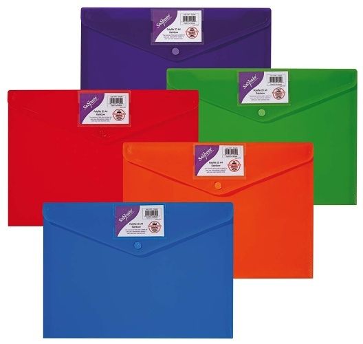 Spisové desky A4, Rainbow, PP 0,2 mm, dvojitý svár pro extrémní pevnost, Snopake garance 5 let, zavírání jedním drukem, s kapsičkou vizitkového formátu, maximální kapacita 150 listů, mix barev