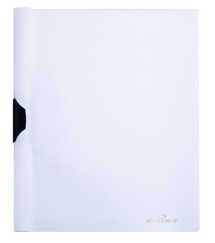 Spisové desky s bočním klipem ve formátu A4. Polypropylenové atraktivní spisové desky v bílé barvě s jednoduchým výsuvným klipem, který okamžitě zajistí neperforované dokumenty. Kapacita až 30 listů papíru.