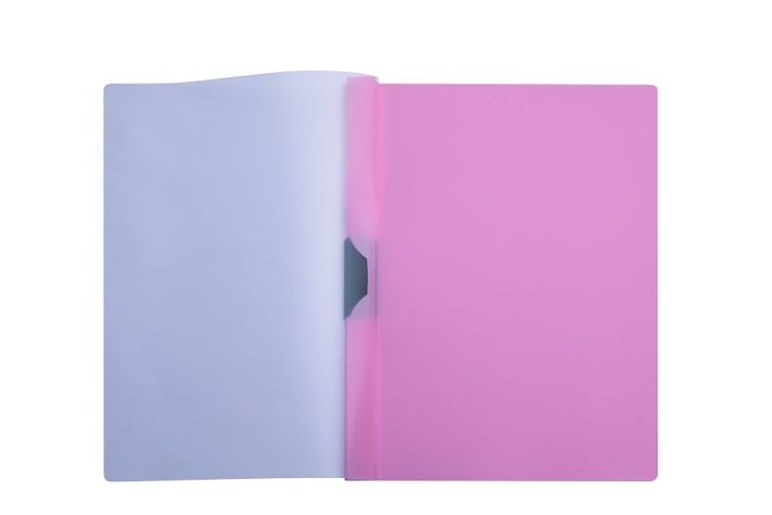Spisové desky s bočním klipem ve formátu A4. Polypropylenové atraktivní spisové desky v pastelově růžové barvě s jednoduchým výsuvným klipem, který okamžitě zajistí neperforované dokumenty. Kapacita až 30 listů papíru.
