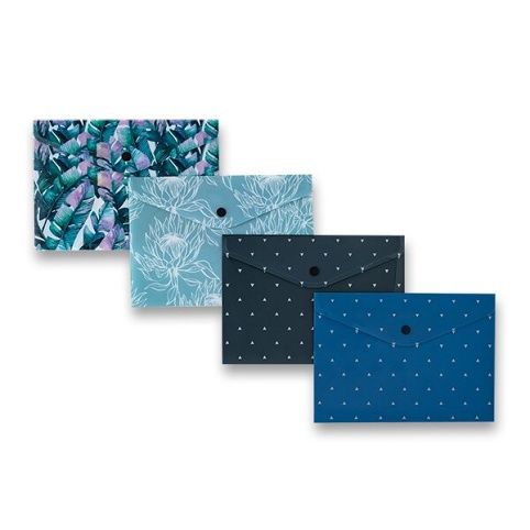 Plastová spisovka smoderním potiskem ve formátu A4. Uzavírání na klopu sdrukem. Mix motivů.