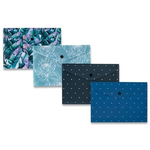 Plastová spisovka smoderním potiskem ve formátu A5. Uzavírání na klopu sdrukem. Mix motivů.