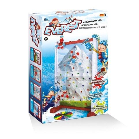 Super zábava! Nová společenská hra pro celou rodinu. Zdolej Everest jako první! Fascinujíci a napínavá hra plná překvapení. Šplhej strmě nahoru, ale uvažuj, kde se chytíš skály. Ruleta určuje barvu dalšího tahu. Cílem hry je dostat své dva horolezce až na vrchol Everestu dříve než soupeř.