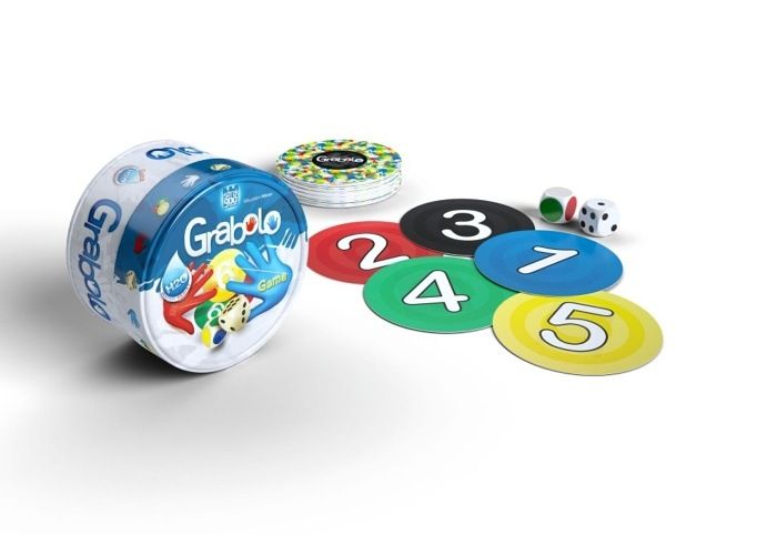 GRABOLO je rychlá kontaktní postřehová hra. Dokaž, že máš u stolu nejlepší oči a nejrychlejší ruce. Kostky určí kombinaci barvy a čísla a ty musíš rychle reagovat. Cílem hry je získat předepsaný počet karet.
