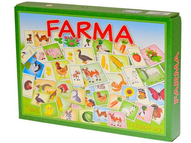 Pomocí těchto her děti získávají veselým a hravým způsobem nové poznatky o rostlinách a zvířátkách žijících na farmě. Hry rozšíří dětem vědomosti o přírodě a zlepší jim logické myšlení. Balení obsahuje: 106ks obrázkových kartónových karet, pexeso a návod ke hrám.