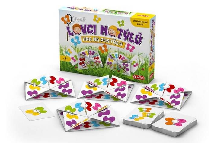 Výjimečná hra, která prokazatelně procvičí postřeh a rychlost. Díky originálním otáčecím herním plánům - motýlím loukám - zabaví lovci motýlů dospělé i děti.