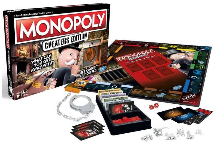 Monopoly hra, která ohýbá pravidla! Co ti projde? Zažijte kultovní momenty, ve kterých jsou pravidla „ohnutá“, peníze jsou „vypůjčené“ a vtipné podnikání je vítáno. Návrhy kreativy na tabuli, kartách a pravidlech povzbuzují hráče k tomu, aby vyjádřili svého vnitřního podvodníka, který je vlastní všem. Dokončete podvod, abyste získali odměnu, ale pokud se vám podvod nezdaří, nevyhnete se následkům! Předstírejte, že pouta nechají hráče „připoutaného“ k desce, dokud nebude propuštěn. Pro 2–6 hráčů. .