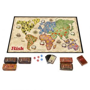 Zmocni se celého světa v této napínavé dobyvatelské hře! Nyní s upravenými figurkami a vylepšenými kartami misí. Strategicky postupuj při dobývání nových území, kde ti jsou odměnou větší posily a stabilizování tvých pozic. Samotný boj ovlivníš jak počtem tvých vojsk, tak hodem tvých kostek. Pletichař, kuj pikle a vymýšlej komplexní strategie jak dobýt území tvých protivníků. Zároveň má keždý hráč svůj tajný unikátní úkol, dokonči ho, odhal ho svým protivníkům a vyhráváš hru! Balení obsahuje hrací desku, armádu 40 pěších jednotek, 12 jízdních jednotek a 8 jednotek dělostřelectva. Dále obsahuje balíček 56 karet Riskuj, 1 box na karty, 5 kostek, 5 válečných karetních beden a návod ke hře.
