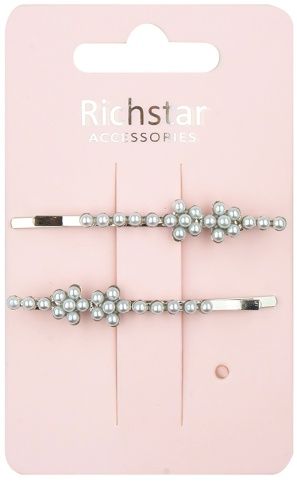 Sponka stříbrná-pérko s perličkami 6 cm 2 ks