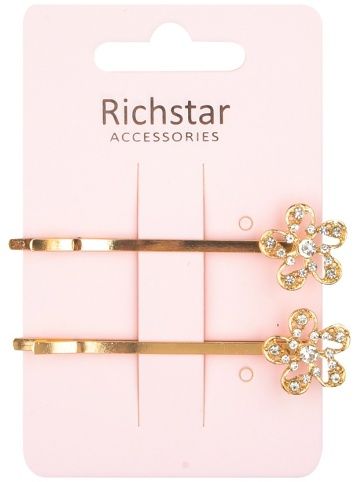Sponka zlatá-pérko s kytičkou 8 cm 2 ks