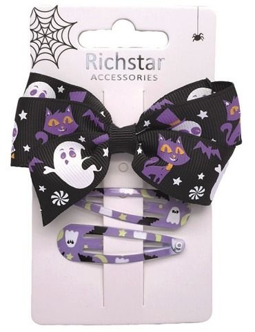 Sponky do vlasů Halloween – fialová sada, 3 ks Stylová halloweenská sada sponek v odstínech fialové rozzáří každý kostým i účes. Třpytivé motivy dodají outfitu ten správný strašidelně hravý šmrnc. Využití: Ideální doplněk na Halloween, tematické oslavy, školní akce nebo focení. Skvělý i jako dárek pro malé i větší strašidla. Vlastnosti: balení: 3 kusybarva: fialováuchycení: kovová sponkaS těmito sponkami se každý účes promění ve stylové a kouzelné halloweenské dílo.