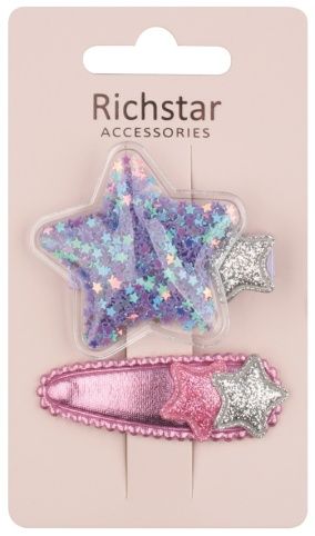 Sponky do vlasů s hvězdičkami Sponky s hvězdičkami a glitry oživí každý účes! Vhodné pro malé i větší parádnice. Dva kusy v balení. Sponka je velká cca 6 cm.