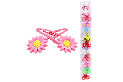 Sponky do vlasů s motivem kytiček. V balení 2 ks. Baleno v sáčku. Různé barvy - dodáváme pouze po balení 10 ks. Rozměry balení 7x9x cm. Výrobek není hračka.
