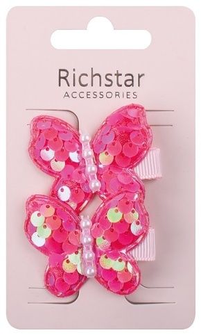 Sponky do vlasů s motýlky a flitry tmavě růžové 4,5 x 3,5 x 0,5 cm, 2 ks
